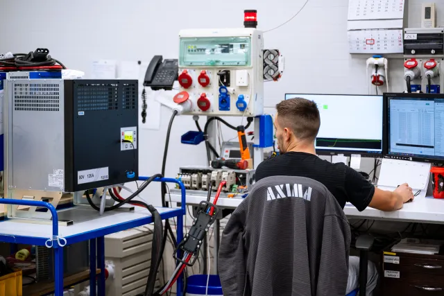 Naše vysokofrekvenční nabíječe trakčních baterií jsou navrženy tak, aby při nabíjení VZV, manipulační techniky, pracovních plošin, AGV a AMR dosahovaly maximální účinnosti, minimalizovaly ztráty energie a umožňovaly přesné řízení nabíjecího procesu podle typu baterie i aktuálních provozních podmínek.